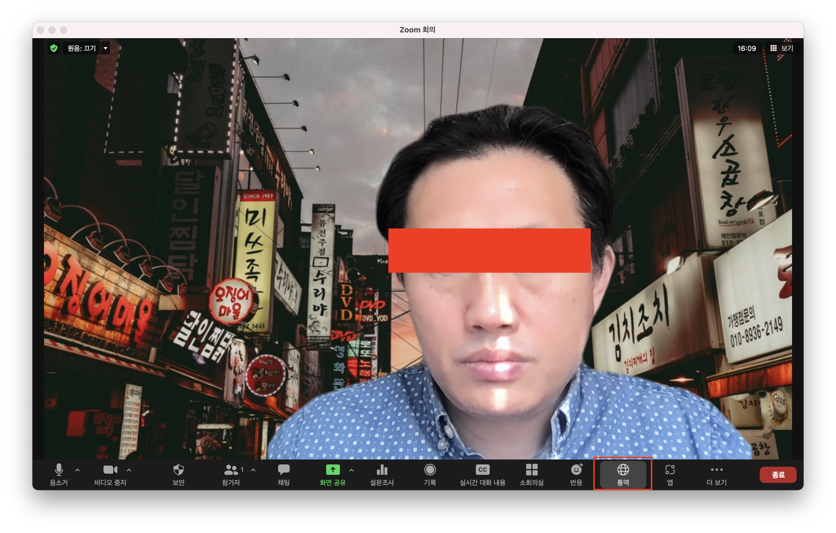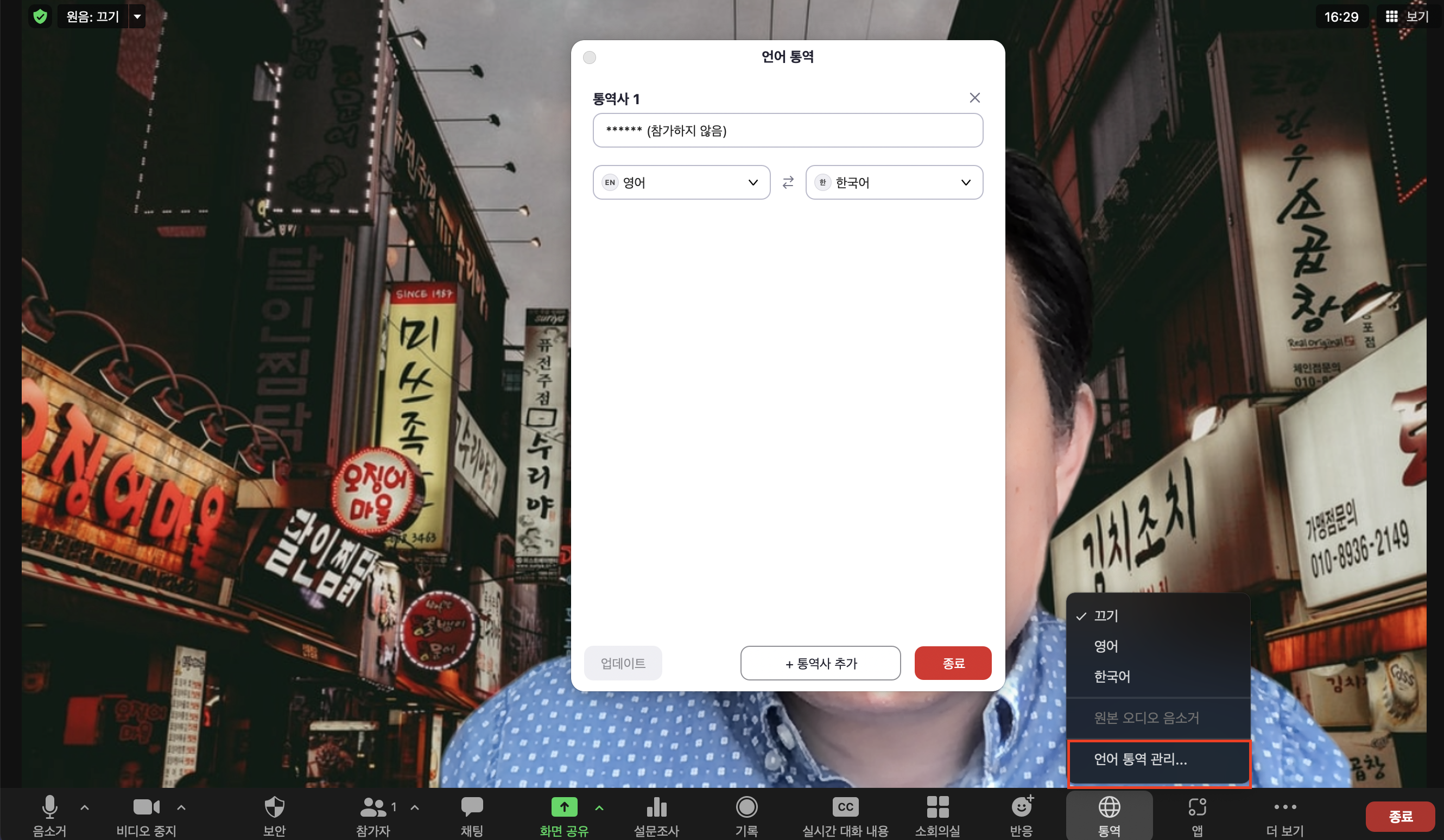 줌 미팅에서 통역 서비스 - 미팅 호스트 화면