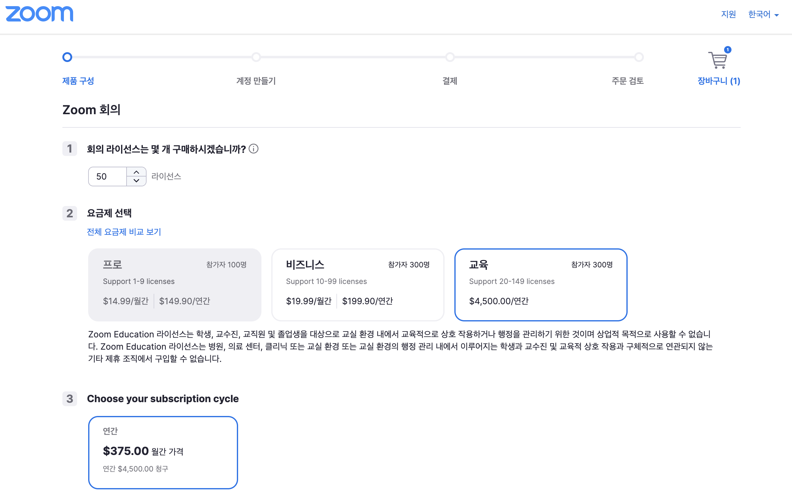1. 줌 미팅 교육 라이센스 - 온라인 구매