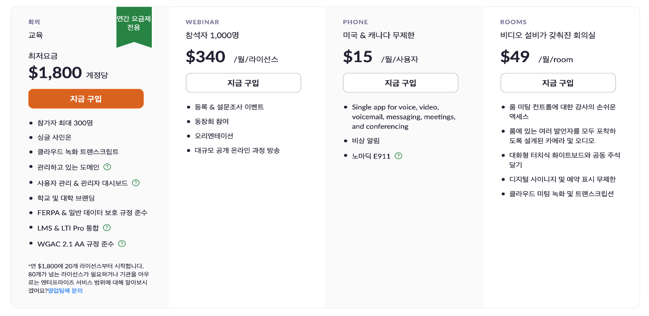 https://blog.zoom.us/how-to-use-zoom-for-online-learning/ - 줌 미팅 교육 라이센스 주문 페이지